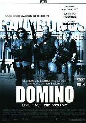 Domino (Keira Knightley) wächst in einer reichen Jet-Set-Welt voller Privilegien auf. Nach einem kurzen Ausflug in die Modelwelt findet sie ihre Bestimmung als Kopfgeldjägerin. Domino verliebt sich nicht nur in diesen gefährlichen Straßenjob, sondern findet in ihren grimmigen Kollegen auch eine Art Ersatzfamilie. Der raubeinige und mit allen Wassern gewaschene Ex-Kriminelle Ed Mosbey (Mickey Rourke) wird zu ihrem Mentor, während sie vom attraktiven Latino Choco heimlich verehrt wird. Zusammen spüren sie so viele flüchtende Verbrecher auf, dass der TV-Produzent Mark Heiss auf sie aufmerksam wird und sie zu Stars in einer Reality-TV-Serie macht. Doch ihr gefährlichster Job steht noch bevor... Star-Regisseur Tony Scott (True Romance, Last Boyscout) inszenierte das kurze Leben der Domino Harvey, die unter mysteriösen Umständen am 27.Juni 2005 tot in ihrer Wohnung in Los Angeles aufgefunden wurde.