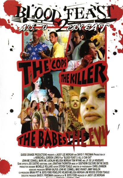 Produzent Jacky Lee Morgan Drehbuch W.Boyd Ford Regie Herschell Gordon Lewis Darsteller John McConnell, Mark McLachlan, Melissa Morgan, Toni Wynne, J.P. Delahoussaye, Chris Mauer, Christy Brown, Christina Cuenca, Michelle Miller, Kristi Polit, Jill Rao, Cindy Roubal Laufzeit ca.99 min. (ungekürzte Fassung) Sprachen Deutsch + Englisch Link IMDB: Blood Feast 2: All U Can Eat